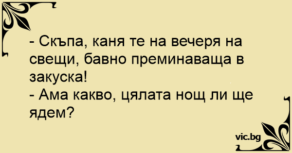 - Скъпа, каня те на вечеря на свещи, бавно преминаваща в закуска!