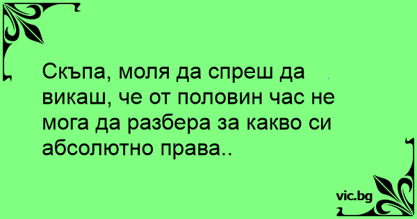 Скъпа, моля да спреш да викаш, че от половин час не мога да разбера за какво си абсолютно права..