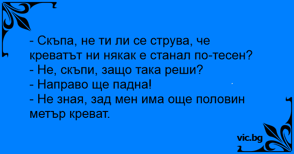 - Скъпа, не ти ли се струва, че креватът ни някак е станал по-тесен?