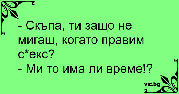 - Жена, защо не мигаш докато правим секс?