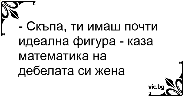 - Скъпа, ти имаш почти идеална фигура - каза математика на дебелата си жена