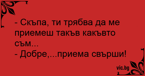 - Скъпа, ти трябва да ме приемеш такъв какъвто съм...