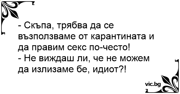 - Скъпа, трябва да се възползваме от карантината и да правим cekc по-често!