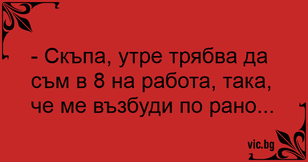 - Скъпа, утре трябва да съм в 8 на работа, така, че ме възбуди по рано...