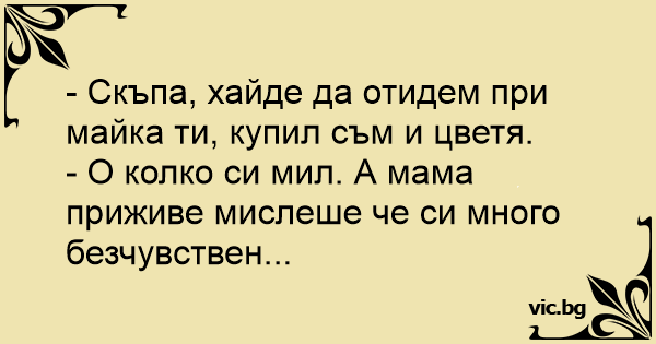 - Скъпа, хайде да отидем при майка ти, купил съм и цветя.