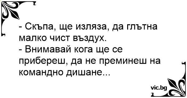 - Скъпа, ще изляза, да глътна малко чист въздух.