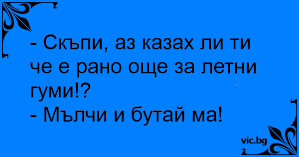 - Скъпи, аз казах ли ти че е рано още за летни гуми!?