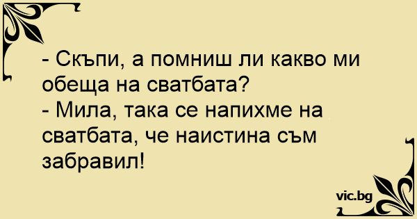 - Скъпи, а помниш ли какво ми обеща на сватбата?