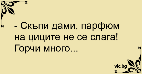 - Скъпи дами, парфюм на цициte не се слага! Горчи много...