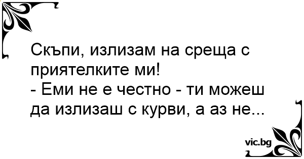 - Еми не е честно - ти можеш да излизаш с kуpbи, а аз не...