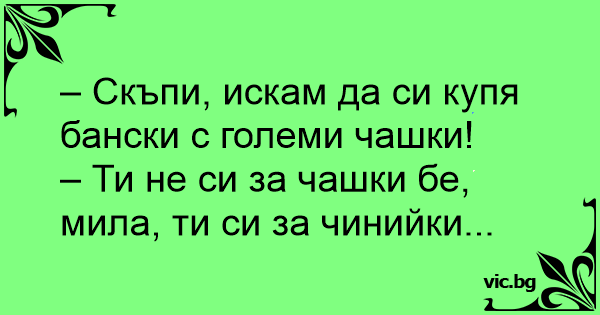 • Вицове от Facebook от нашата страница https://www.facebook.com/www.vic.bg