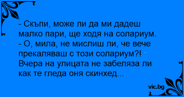 - Скъпи, може ли да ми дадеш малко пари, ще ходя на солариум.