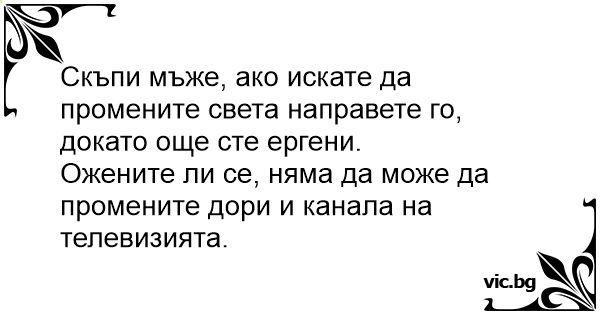 Скъпи мъже, ако искате да промените света направете го, докато още сте ергени.