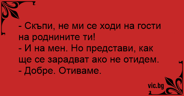 - Скъпи, не ми се ходи на гости на роднините ти!