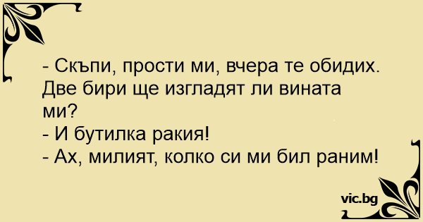 - Скъпи, прости ми, вчера те обидих. Две бири ще изгладят ли вината ми?