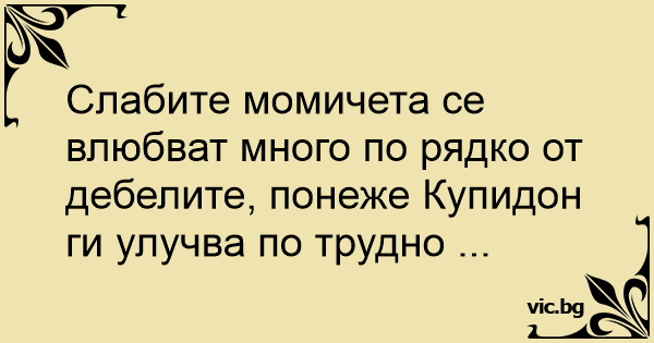 Слабите момичета се влюбват много по рядко от дебелите, понеже Купидон ги улучва по трудно ...