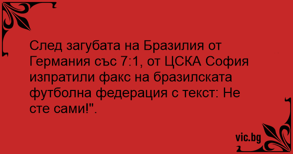 След загубата на Бразилия от Германия със 7:1, от ЦСКА София изпратили факс на бразилската футболна федерация с текст: Не сте сами!".