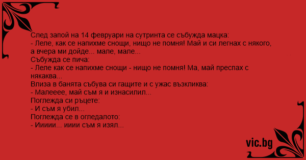 След зaпой нa 14 февруари на сутринта се събужда мацка: