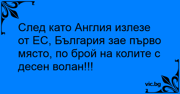 След като Англия излезе от ЕС, България зае първо място, по брой на колите с десен волан!!!