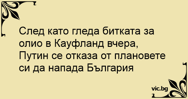 След като гледа битката за олио в Кауфланд вчера, Путин се отказа от плановете си да напада България