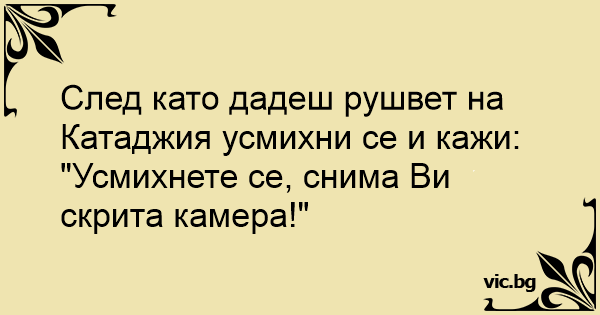 След като дадеш рушвет на Катаджия усмихни се и кажи: