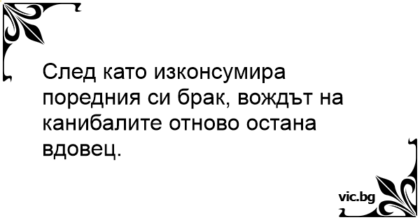 След като изконсумира поредния си брак, вождът на канибалите отново остана вдовец.