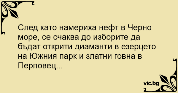 След като намериха нефт в Черно море, се очаква до изборите да бъдат открити диаманти в езерцето на Южния парк и златни говна в Перловец...