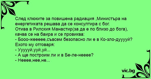 След клюките за повишена радиация ,Министъра на енергетиката решава да се консултира с бог.