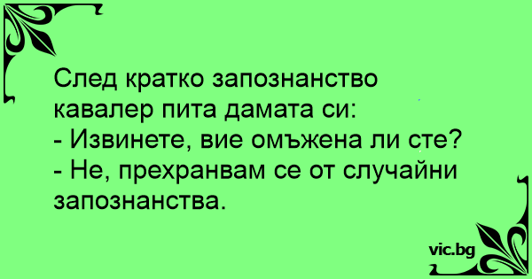 След кратко запознанство кавалер пита дамата си: