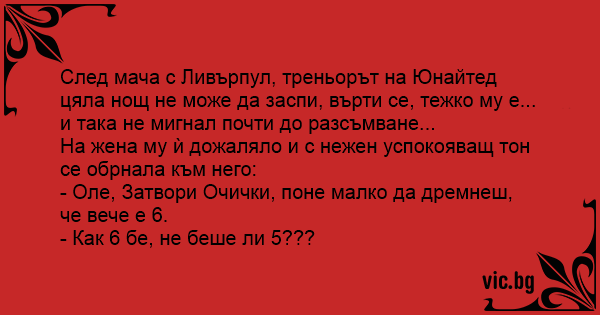 След мача с Ливърпул, треньорът на Юнайтед цяла нощ не може да заспи, върти се, тежко му е... и така не мигнал почти до разсъмване...