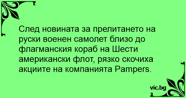 След новината за прелитането на руски военен самолет близо до флагманския кораб на Шести американски флот, рязко скочиха акциите на компанията Pampers.