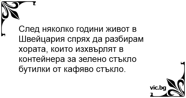 След няколко години живот в Швейцария спрях да разбирам хората, които изхвърлят в контейнера за зелено стъкло бутилки от кафяво стъкло.