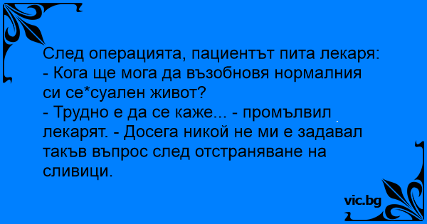 След операцията, пациентът пита лекаря:
