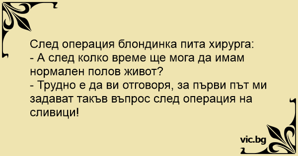 - Трудно е да ви отговоря, за първи път ми задават такъв въпрос след операция на сливици!