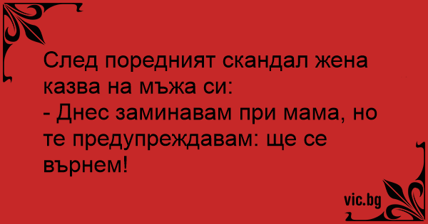 След поредният скандал жена казва на мъжа си: