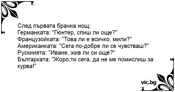 Българката: "Жоро,ти сега, да не ме помислиш за kуpba!"