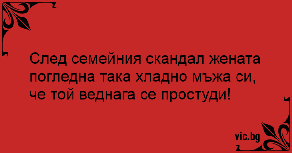 След семейния скандал жената погледна така хладно мъжа си, че той веднага се простуди!