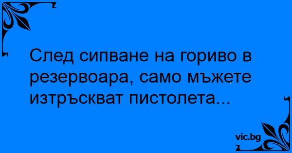 След сипване на гориво в резервоара, само мъжете изтръскват пистолета...