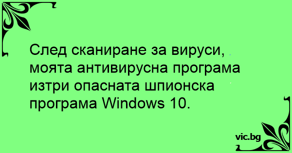 След сканиране за вируси, моята антивирусна програма изтри опасната шпионска програма Windows 10.