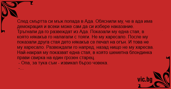 Дявола се приближил до блондинката, изправил я на крака и й казал: