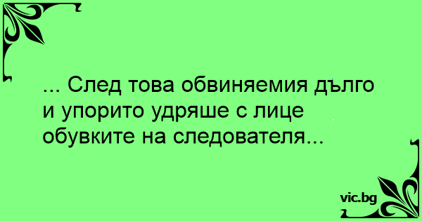 ... След това обвиняемия дълго и упорито удряше с лице обувките на следователя...