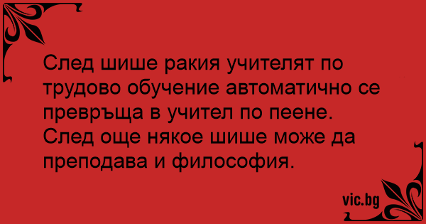 След шише ракия учителят по трудово обучение автоматично се превръща в учител по пеене.