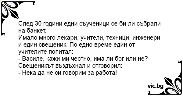 • Вицове от Facebook от нашата страница https://www.facebook.com/www.vic.bg