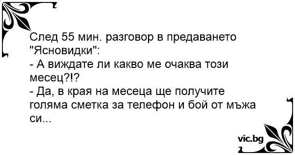 - Да, в края на месеца ще получите голяма сметка за телефон и бой от мъжа си...