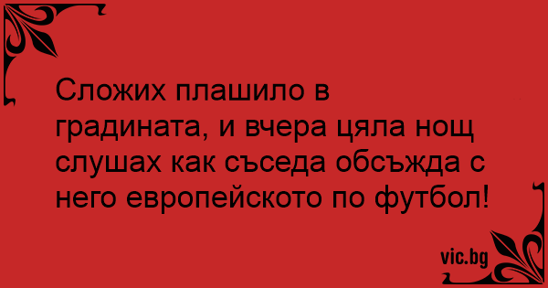 Сложих плашило в градината, и вчера цяла нощ слушах как съседа обсъжда с него европейското по футбол!