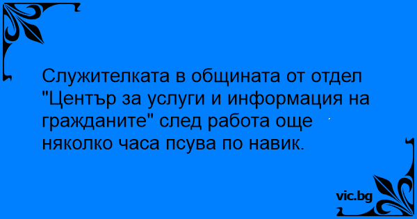 Служителката в общината от отдел "Център за услуги и информация на гражданите" след работа още няколко часа псува по навик.
