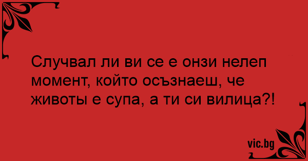 Случвал ли ви се е онзи нелеп момент, който осъзнаеш, че животы е супа, а ти си вилица?!