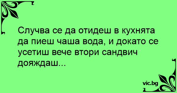 Случва се да отидеш в кухнята да пиеш чаша вода, и докато се усетиш вече втори сандвич дояждаш...