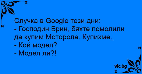 - Господин Брин, бяхте помолили да купим Моторола. Купихме.