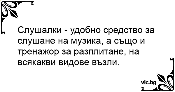 Слушалки - удобно средство за слушане на музика, а също и тренажор за разплитане, на всякакви видове възли.